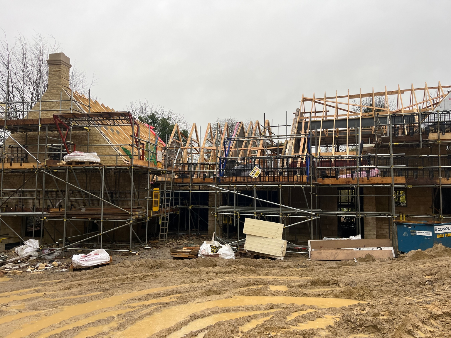 Lots of progress on the two East Gate houses with roofs almost complete. The rain is really not helping matters though with lots of viewings postponed due to access issues.